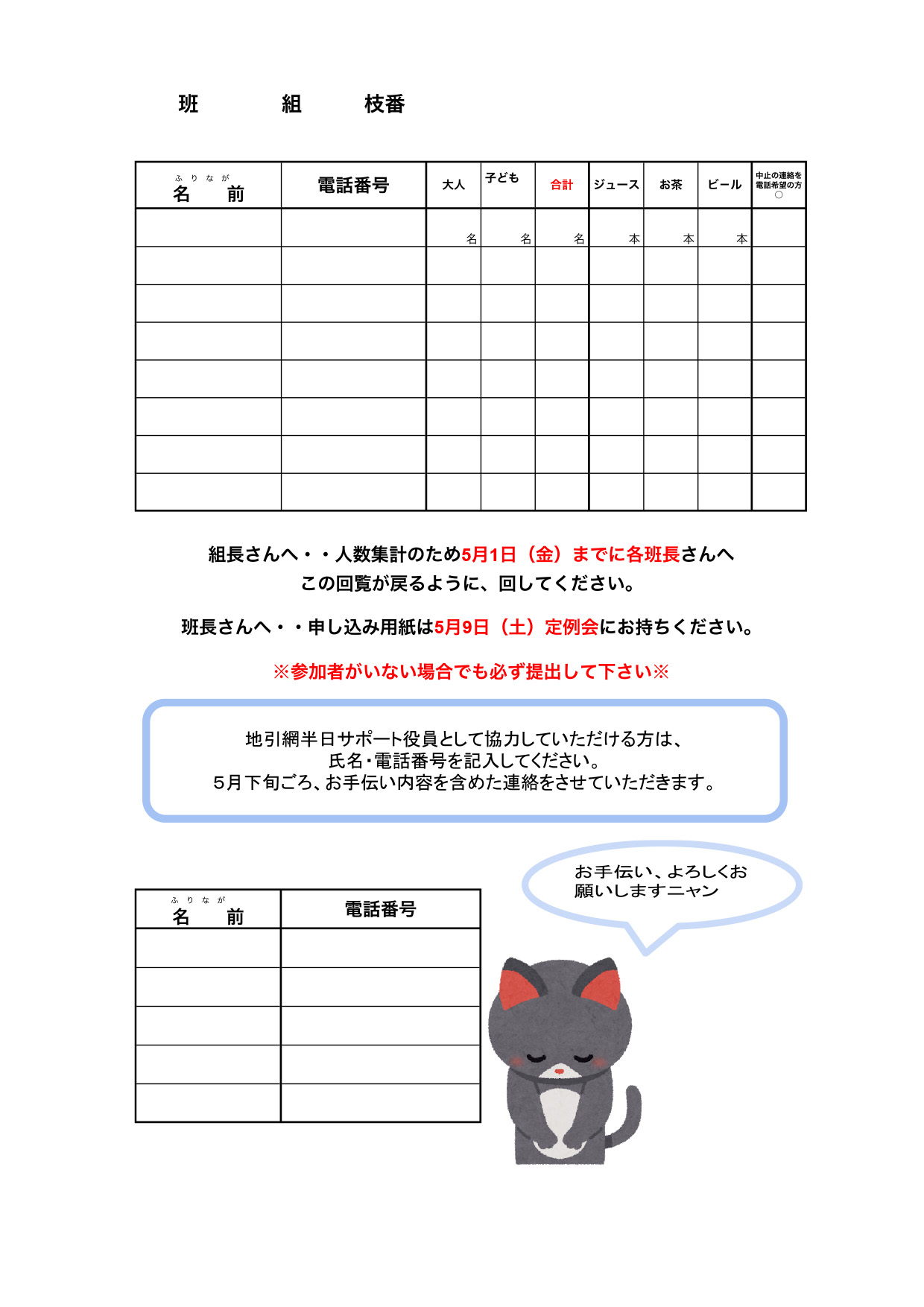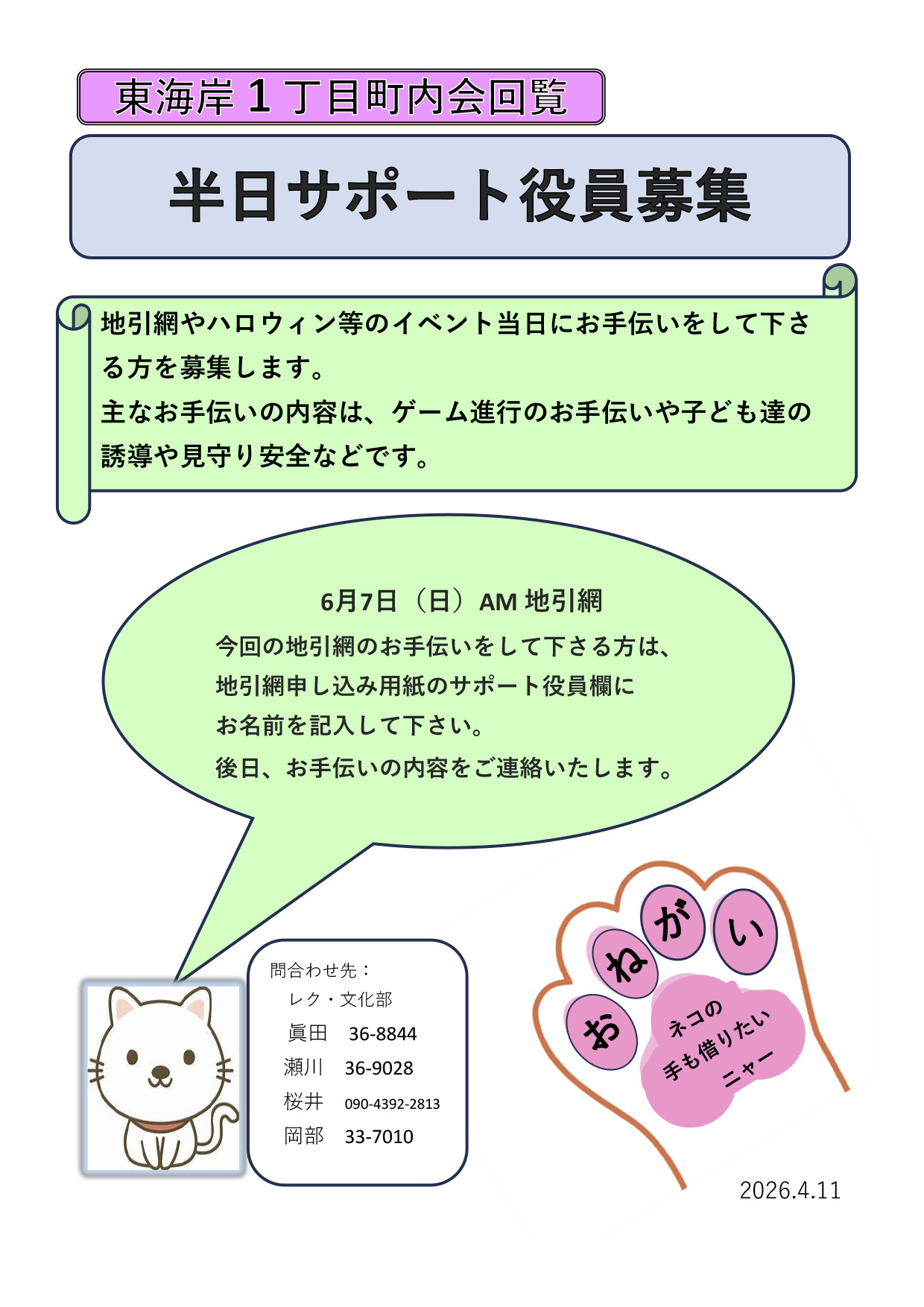 地引網のお知らせと半日サポート役員募集